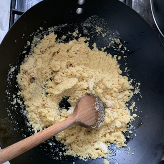 The recipe is made with coarse semolina and a generous amount of ghee.