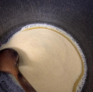 👉In the same pot add in semolina roast it for 2 to 3 mins add in the remaining ghee and mix it well stirring continuously for more 2 mins.