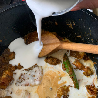 Sauté the prawns 🍤 until cooked than Add the ground caldine masala and sauté for 2–3 minutes till fragrant.